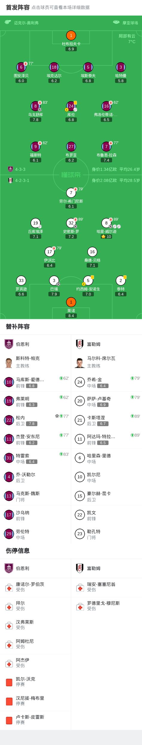 第31分鐘,再度領(lǐng)先,巴錫門(mén)前搶點(diǎn)頭球破門(mén),富勒姆2-1
